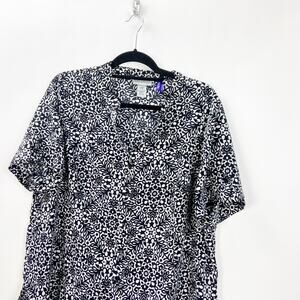 Catherines 14/16W Plus Womens Black White Floral Print Shirt Blouse Top