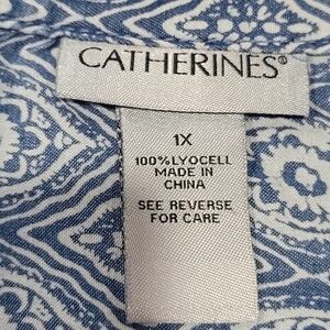 Catherine's 1X 100% Lyocell Geometric Blue White Button Up Shacket Boho Office