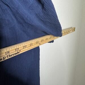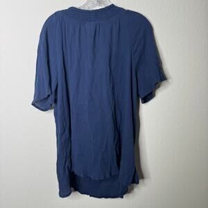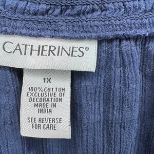 Catherines 1X Blue Embroidered Cotton Boho Peasant Top Tassel V-Neck Blouse