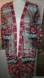 Completely embroidered open jacket...black base with elaborate red, white, brown....incredible work....100% Polyester, embroidery thread: 100% Rayon.... Hand wash or Dry clean