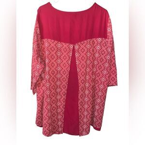 Catherines 2X 22/24W Red Zip Shoulder 3/4Sleeve Southwest Knit Top Layered Look Like New