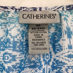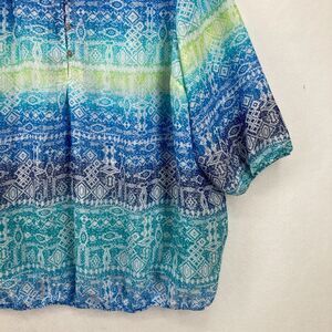 Catherines 2X Boho Peasant Top Blue Green Ombre Print 3/4 Sleeve Lightweight