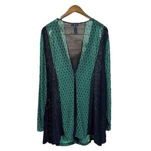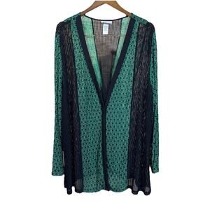 Catherines 2X Open Knit Cardigan Kimono Cover Up Green Lightweight Beachy