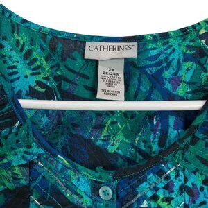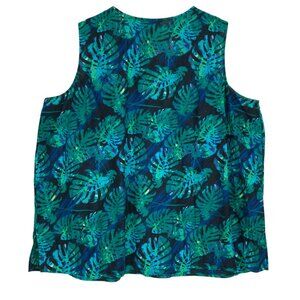 Catherines 2X Sleeveless Tropical Leaf Print Henley Blouse Top Plus Size