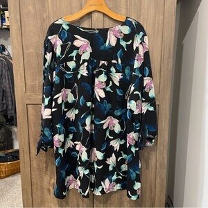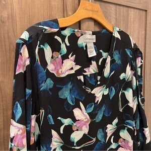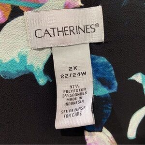 Catherines 2X Tunic Top V Neck Floral 3/4 Sleeves Lagenlook