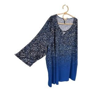 Catherines 3/4 Sleeve Navy Patterned Pullover Keyhole Blouse Business Casual 4X