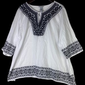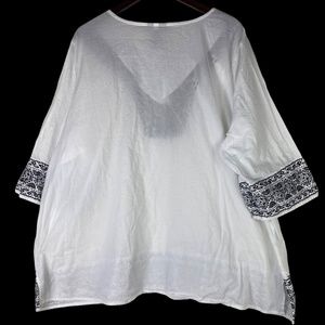 Catherines 3X 22 24 Top Tunic Shirt White Black Peasant Bohemian Flowy