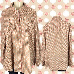 ITEM: Catherines + 3X Beige-Red Dot Print Button Down Collar Coton Long Sleeve Shirt