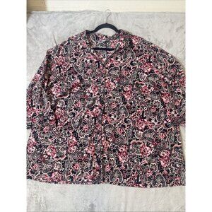 Catherines 3X Blouse Black Pink Paisley Floral Stretch 3/4 Sleeve Plus Size Top. Condition is Pre-owned - Excellent. Shipped with USPS First Class.