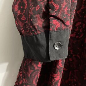 Catherine’s 3XP 26/28 Top Red Black Floral Lace Print Plus Size Romantic