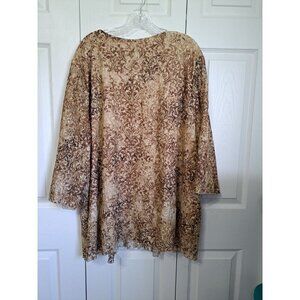 Catherines 4X (30/32W) Brown V-Neck Medallion Print 3/4 Sheer Sleeve Tunic
