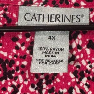 Catherines 4X Pink Floral Tunic Blouse Rayon Boho 3/4 Sleeve Plus Size Top