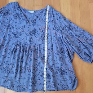 Catherines 4X peasant blouse style top balloon sleeves 3/4 length in a blue floral print. Material and size tags were removed, I sized based on measurements and using the official website's size guide. In excellent pre owned condition otherwise with no damage and minimal wear as shown in photos.