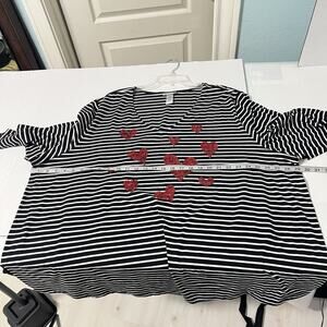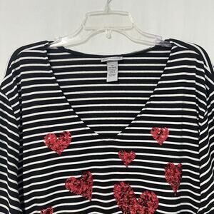Catherines 4XL Plus Size Top Tunic Striped Heart Sequin Embellished Comfy Casual