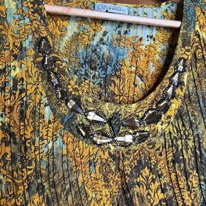 Catherines Animal Print Women’s Blouse 1X Bell Sleeves Boho Lagenlook Flowy Chic
