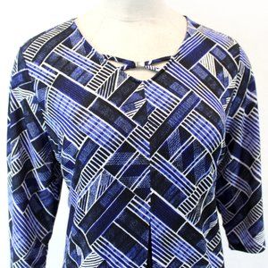 Catherines Anywear Blue Abstract Print Striped Top Blouse 4X 30/32W NWOT