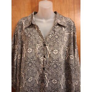 Catherines Black Beige blouse top Short Sleeve Collared Career Tunic 3X 26/28W