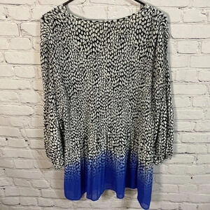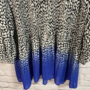 Two toned-top part is white, black, and gray abstract dots on top and fades into a beautiful blue on bottom
