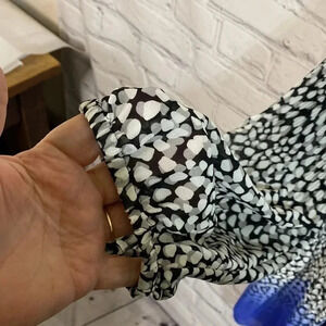 Two toned-top part is white, black, and gray abstract dots on top and fades into a beautiful blue on bottom
