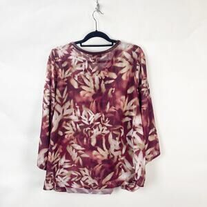 Catherines Black Label 0X 1X Plus Womens Maroon Ivory Print Faux Wrap Blouse