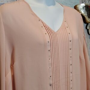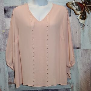 Catherines Black Label 2X Blush Pleats Studs Polyester Blouse Popover 524