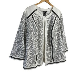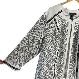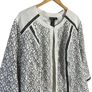 Catherines Black Label Cardigan 2X Black and White Floral Lace Embroidered NWT $99