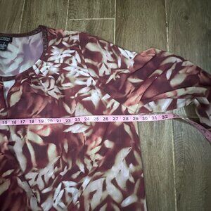 Catherines Black Label Womens 1X Red Floral Long Sleeves Keyhole Neck Blouse