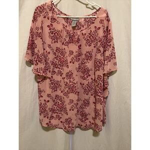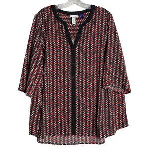 Catherines Black Label Black & White Print 1/2 Sleeve Fuchsia Stripe Size 1X