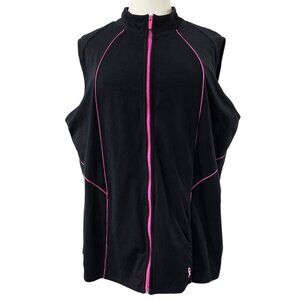 Catherines Black Pink Trim Full Zip Vest Pockets Stretch Breast Cancer Awareness