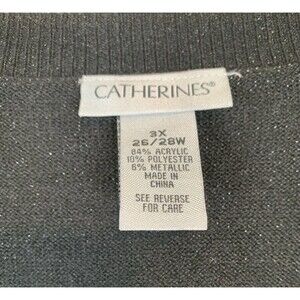 Catherine’s Black Studded Metallic Long Sleeve Top Blouse Women’s Plus Size 3X