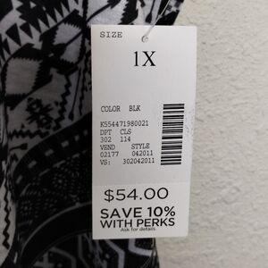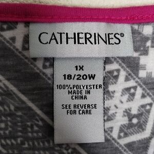 Black and white pattern throughout, with pink edges and small sheer panel along the bottom hem