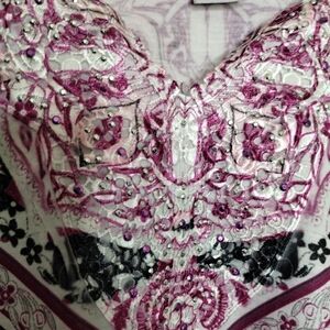 Catherines Black White Purple Sleeveless Paisley Embellished Tank Plus Size 2X