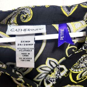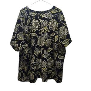 Catherine's Black Yellow Floral Paisley Button Up Blouse Petite Plus 3X 26/28WP