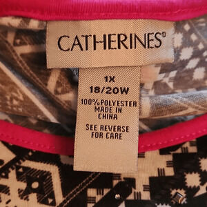 Catherines Black and White Geometric Print Sequin Top w/Pink Trim 1X (3097)