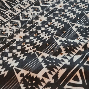 Catherines Black and White Geometric Print Sequin Top w/Pink Trim