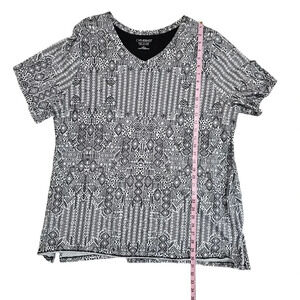 Catherine’s Blouse 1X 18/20W Black White Geometric Print Easy Fit Top Plus