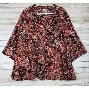 Catherines Blouse 3X Petite Women Orange Rust Boho Peasant CottageCore