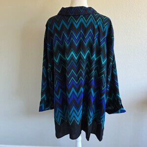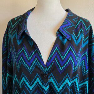 Catherines Blouse Shirt Button Up Bold Geometric Roll Tab Sleeve Plus Size 4X