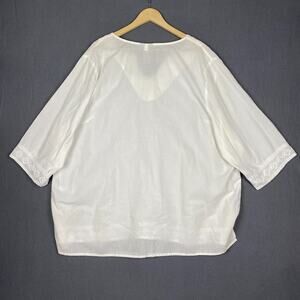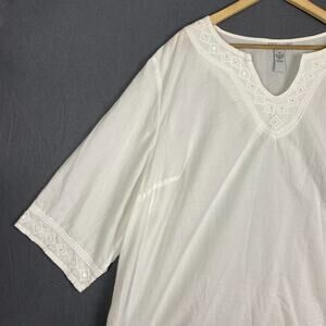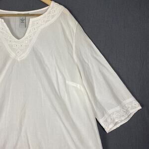 Catherines Blouse Women 0X White Embroidered Blouse Preppy Office Layering