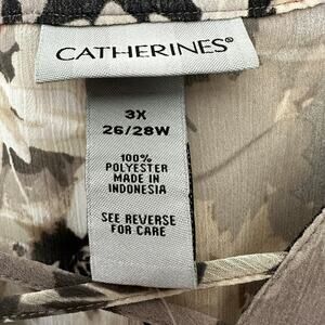 Catherines Blouse Womens 3X Beige Neutral Floral Sheer Boho Cape Sleeve Pullover