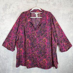 Catherines Blouse Womens 3X Colorful Paisley Button-Up tunic career office bold