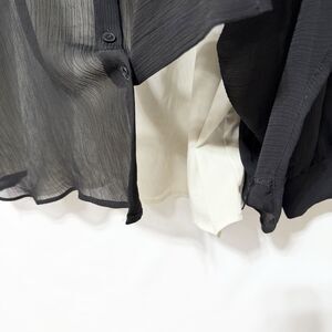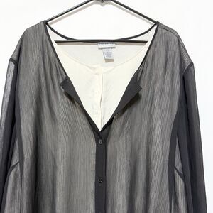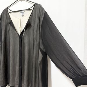 Catherines Blouse Womens Plus Size 4X Black Ivory Button Down Long Sleeve Top