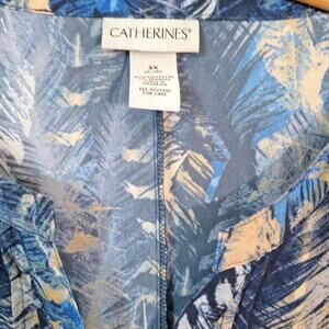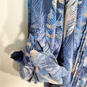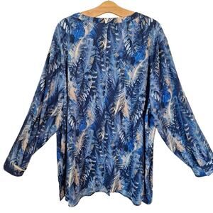 Catherines Blue Feather Print Button Up Blouse Long Sleeve Women Size 3X Boho