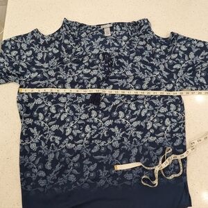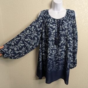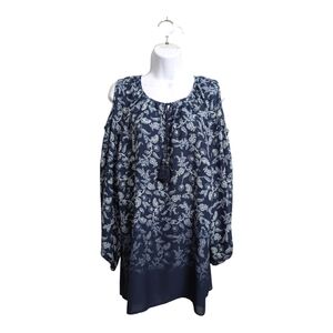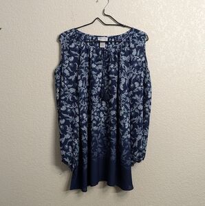 Catherines Blue Floral Chiffon Blouse Cold Shoulder Long Sleeve Semi Sheer 1X