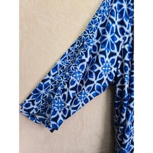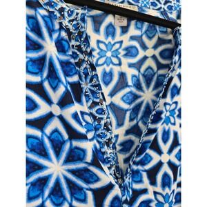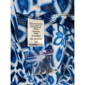 Catherines Blue Floral Womens Tunic Top 3X Beaded V-Neck Bohemian Maximalism