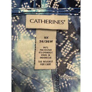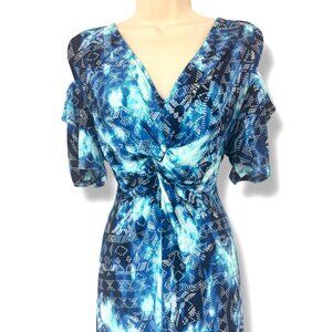 Catherines Blue Print Cold Shoulder Twist Knot Midi Dress Size 5X 34/36W Plus Sz