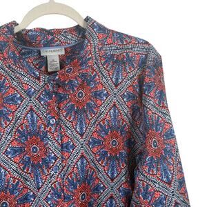 Catherines Blue Red Floral Button Front 100% Cotton Shirt Office Womens Plus 2x