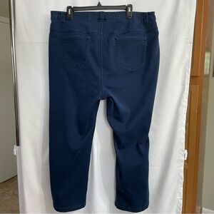 These Catherines jeans feature a deep blue hue and a stylish ankle-cropped design, perfect for a modern look. The classic denim stitching adds a touch of timeless appeal, making them a versatile addition to any wardrobe. No visible flaws…EUC