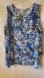 Catherines Blue White Black Leaf Print Sleeveless top. Mesh overlay keyhole neck