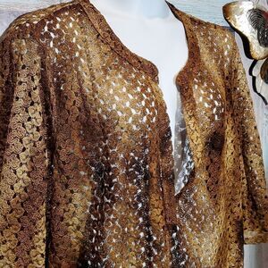 Catherines Brown Ombre Open Weave Deep V Blouse Sz 4X Plus Size Beauty 823